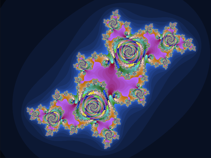 Press the J key to switch from the Mandelbrodt set to the Julia set, then play around with colors.